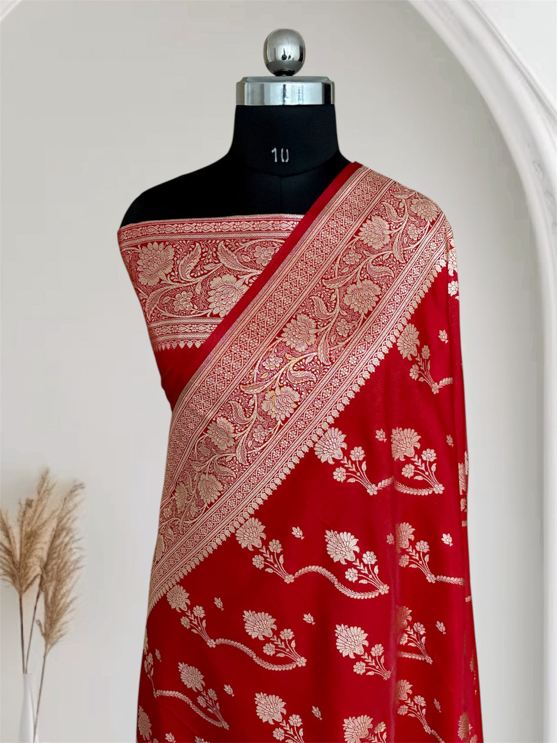 Red Satin Silk Banarasi Saree – Tircha Jaal