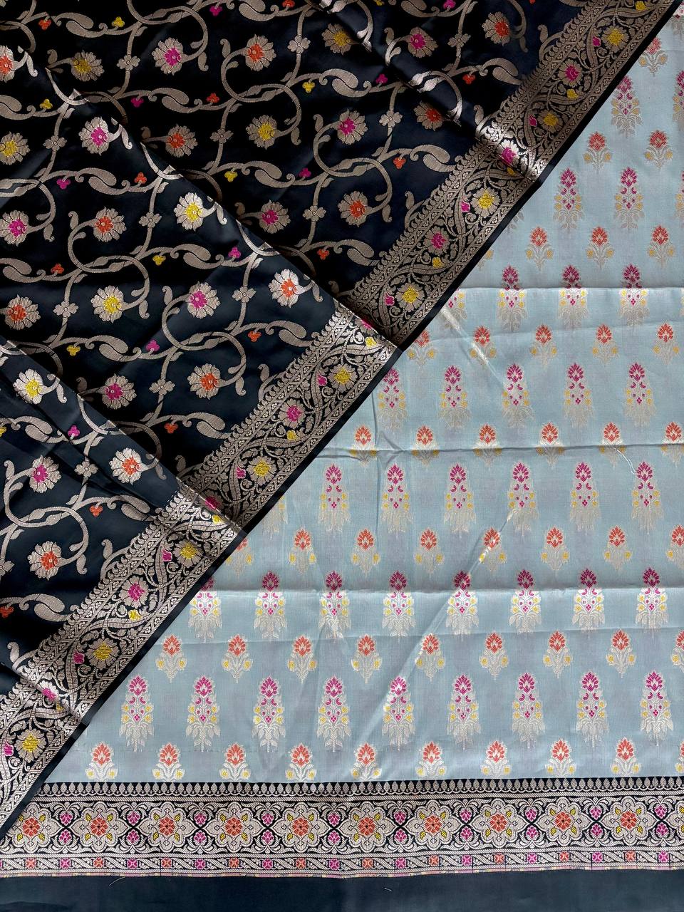 Black and Grey Satin Silk Banarasi Suit