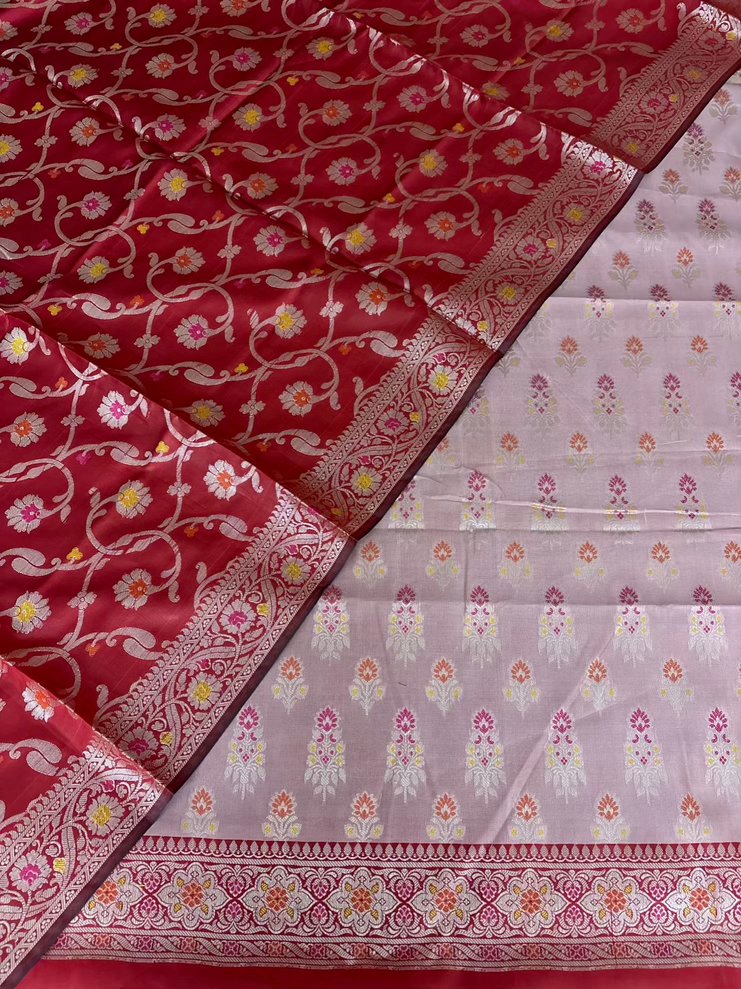 Once an order is placed, if the saree is ready in stock, it goes through a final finishing process—known as ‘Deka’—to ensure perfection in every detail. After this, the saree is carefully packed and dispatched. This process typically takes 1–2 working days before shipping.