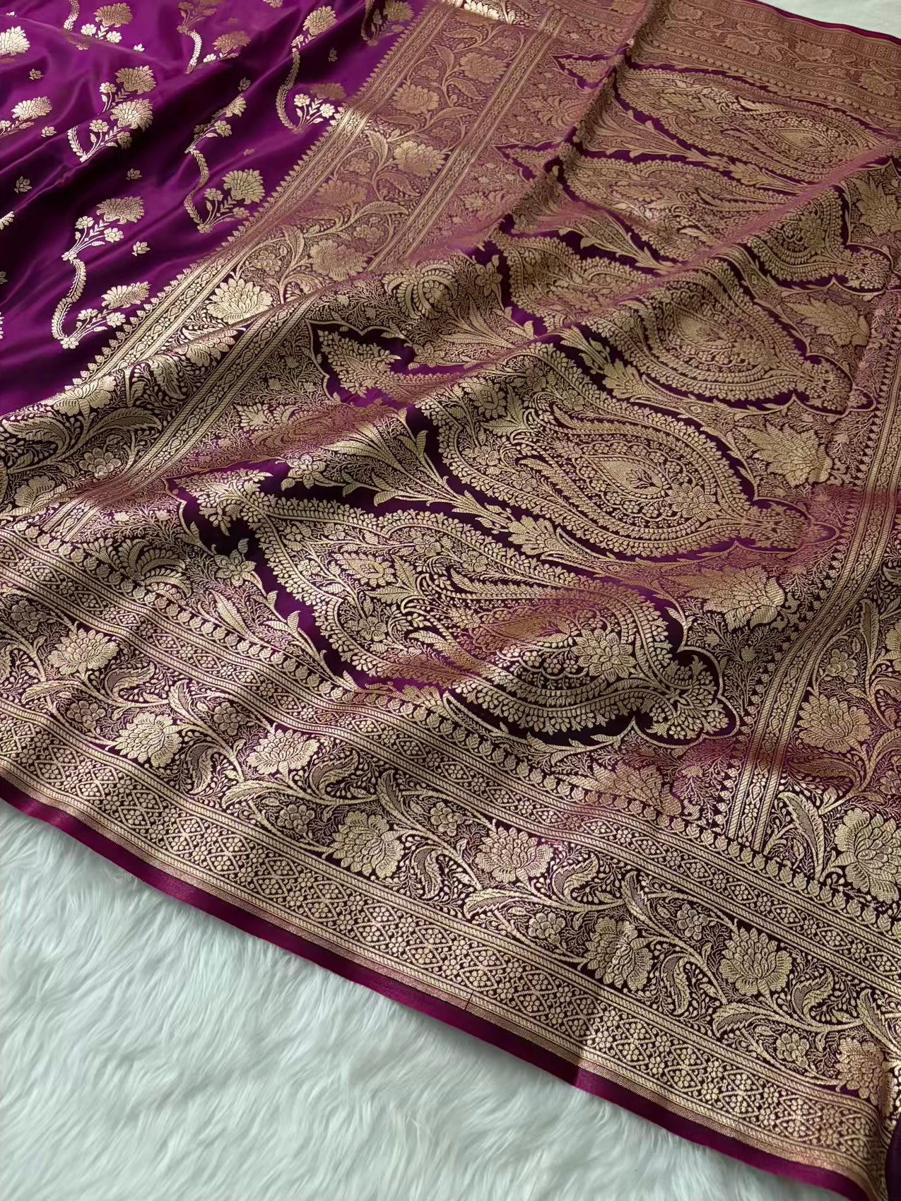 Wine Satin Silk Banarasi Saree – Tircha Jaal